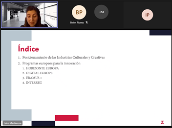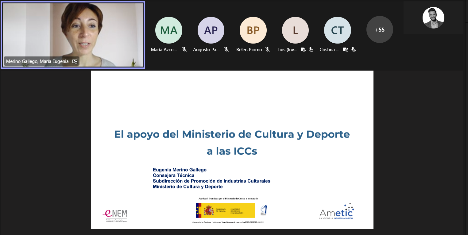 En el apartado del apoyo del Ministerio de Cultura y Deporte a las ICCs contamos con la representación de Eugenia Merino, Consejera Técnica de la Subdirección General de Promoción de Industrias Culturales del Ministerio de Cultura y Deporte. Quien explicó las tres próximas ayudas que se publicarán en el primer semestre del año de 2022: